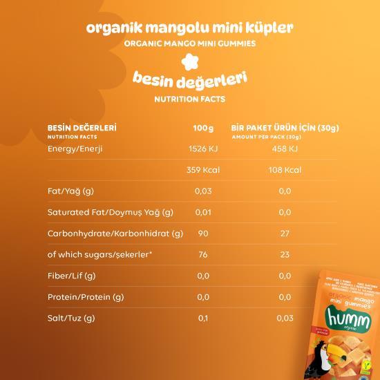 Humm Organic’s Organic Gluten-Free Vegan Mango Mini Cubes are the perfect choice for fruit snack lovers! These delightful mini cubes are made with natural and nutritious ingredients like organic mango purée and organic rice flour. This tasty and healthy snack is gluten-free, vegan, and contains no added sugar, preservatives, or artificial coloring.